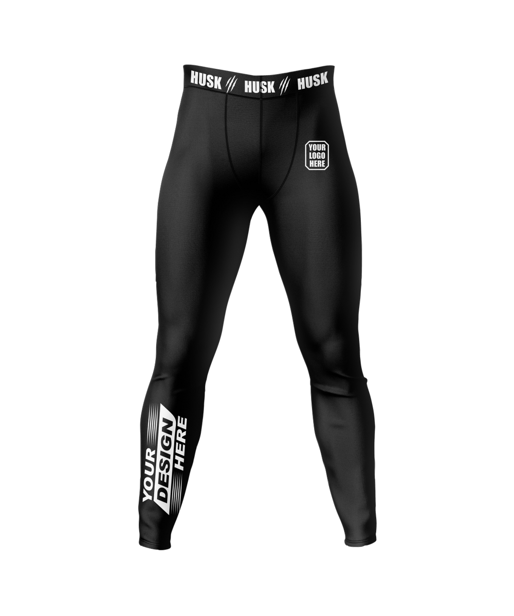 Plain black compression pants with customizable logo placement for a clean and professional athletic look.